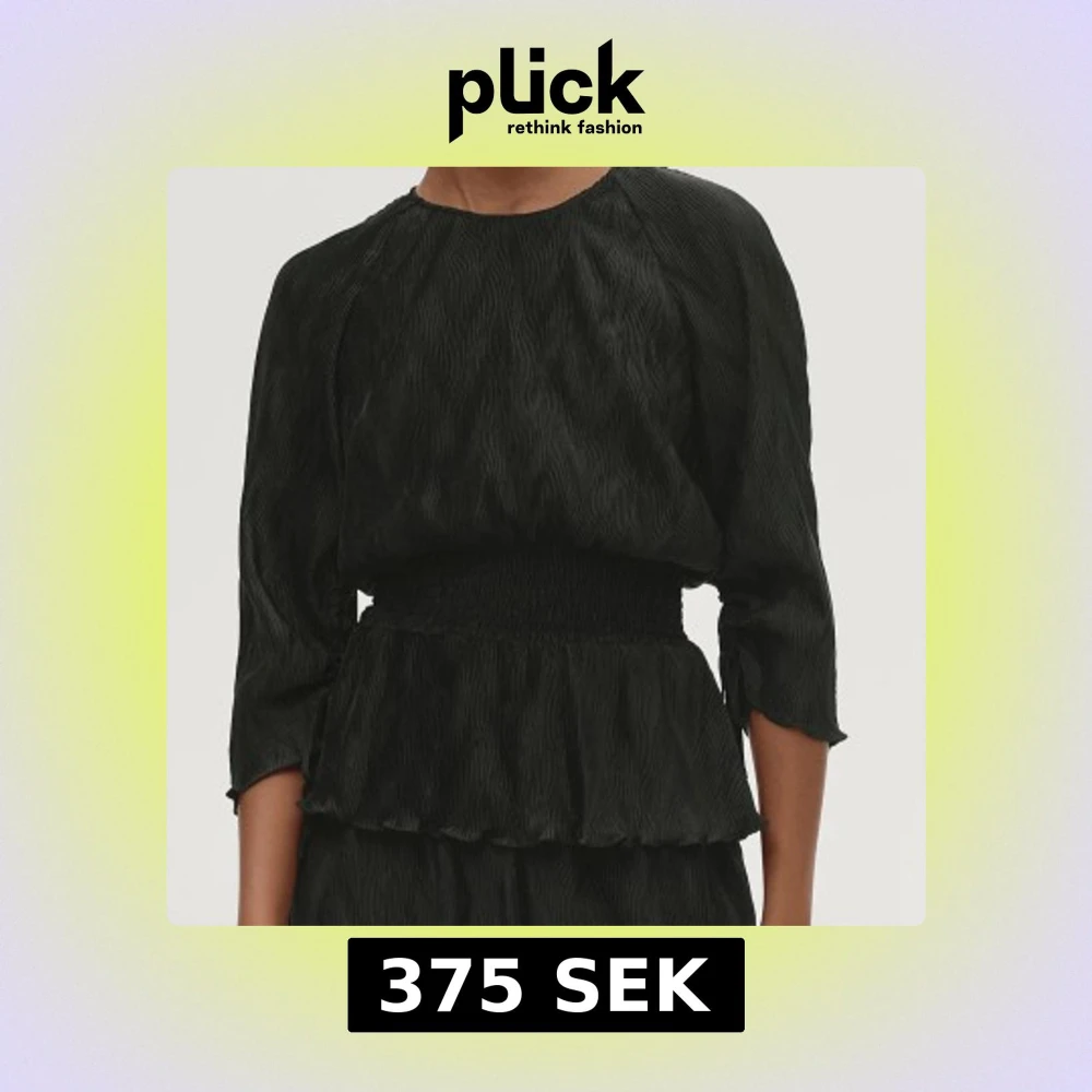 Snygg svart blus med volangdetaljer i midjan och trekvartsärmar. Perfekt för en stilren look.💕💕Nypris 800 kr
