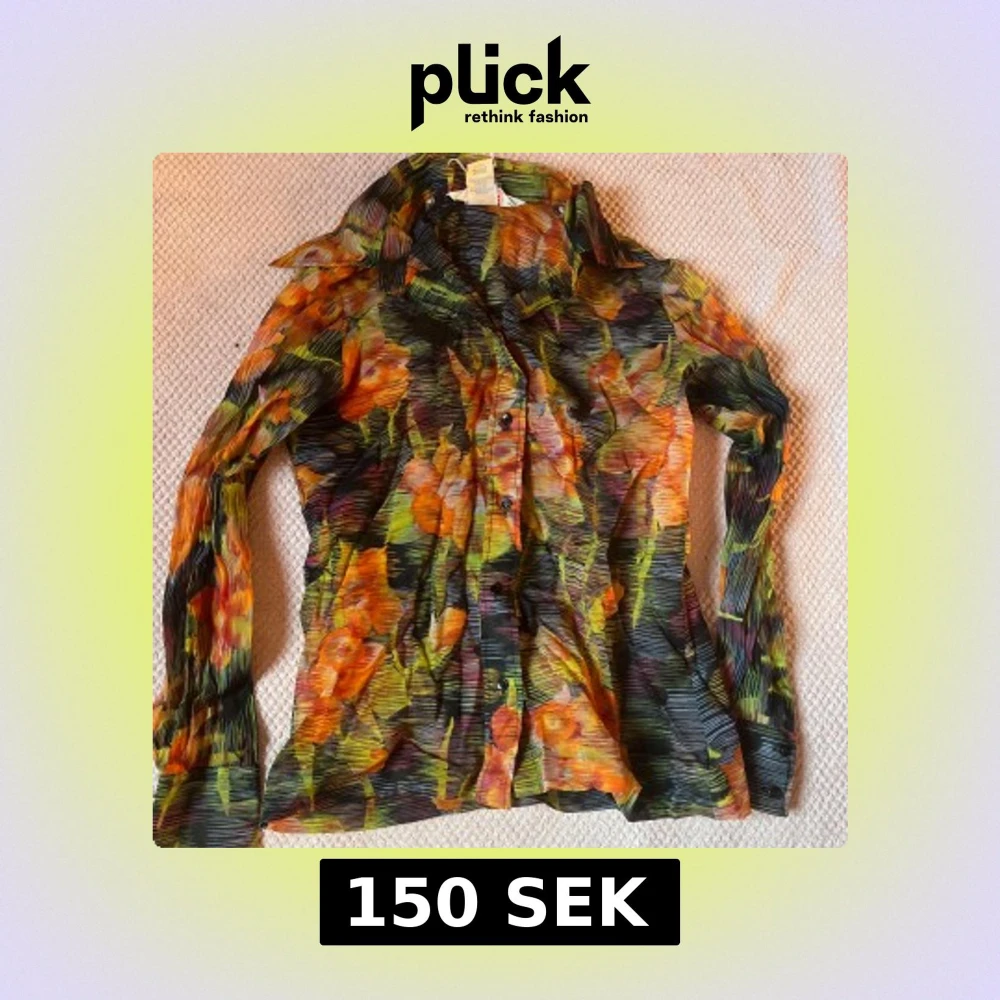Supercool 2000-tals skjorta med insperation från 70-talet. Den är i någon sorts av mesh tyg men är inte så genomskinlig som man kan tro. Den passar ungefär storlek S!