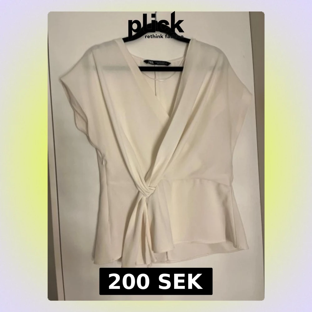 Vit omlottblus med knyt i sidan - 🤍Trendig Vit blus från Zara 🤍Storlek M 🤍Använd några gånger  🤍Populär blus 🤍Superfin
