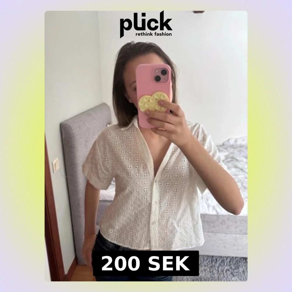 Söt vit blus med broderade hålmönster och korta ärmar. Blusen har knappar framtill och en avslappnad, boxig passform. Perfekt till jeans eller kjol för en fräsch look. Materialet känns lätt och luftigt, perfekt för varmare dagar.