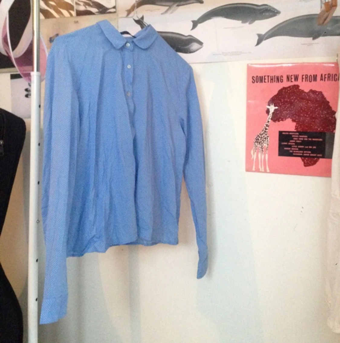 Babyblå, småprickig, 60-tals blus från Zara. Nästan aldrig använd