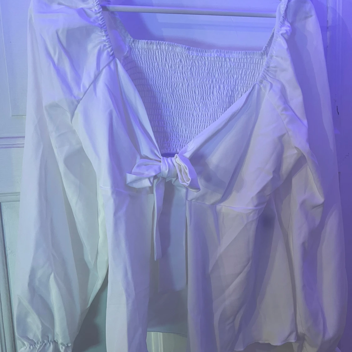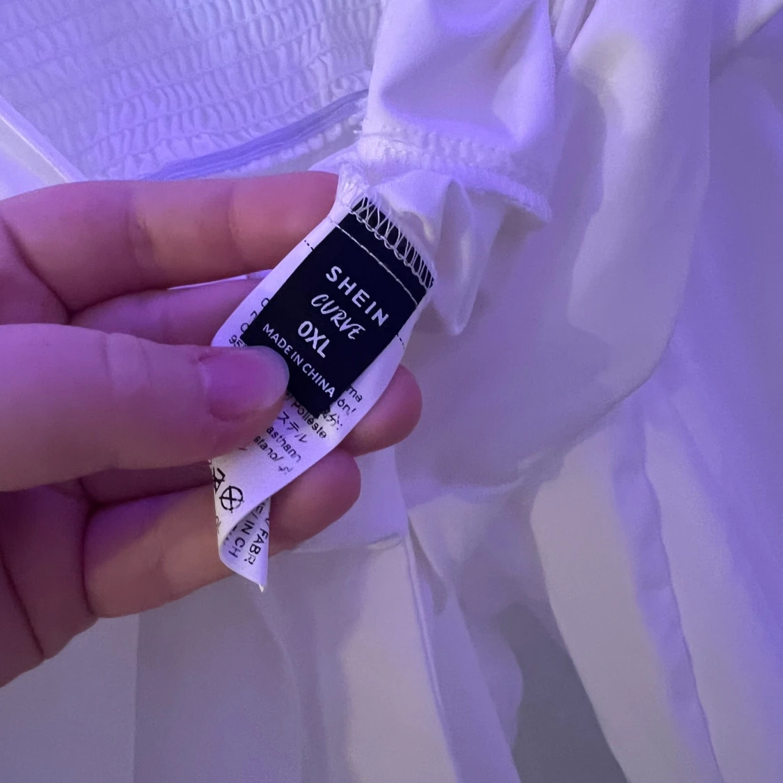 En vit tröja från shein, ganska kort i armarna på mig, storlek 0XL