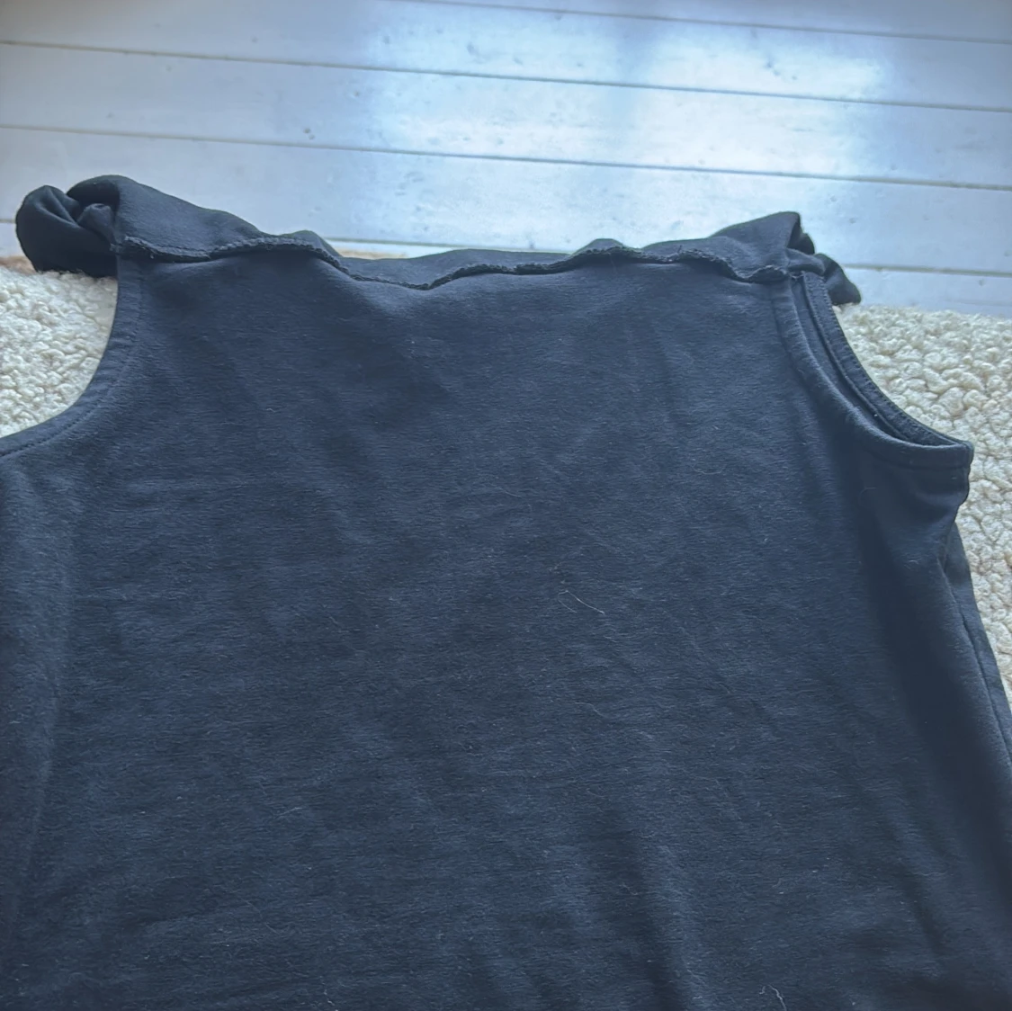 Säljer en svart offshoulder-modell och ärmlös design. I mjukt bomullstyg och har en enkel, stilren look som passar perfekt till sneakers eller boots. Snygg och bekväm för dig som gillar minimalistisk stil.
