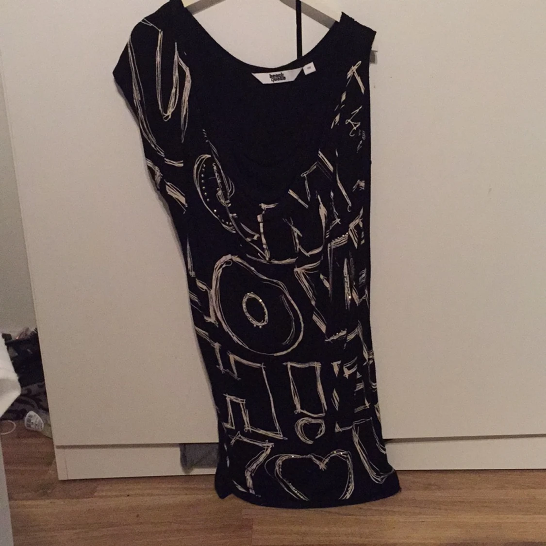 En fin svart tunika med vittext på som används ett fåtal gånger. 75kr + frakt (Kan få paketpris vid fler köp av mina kläder)