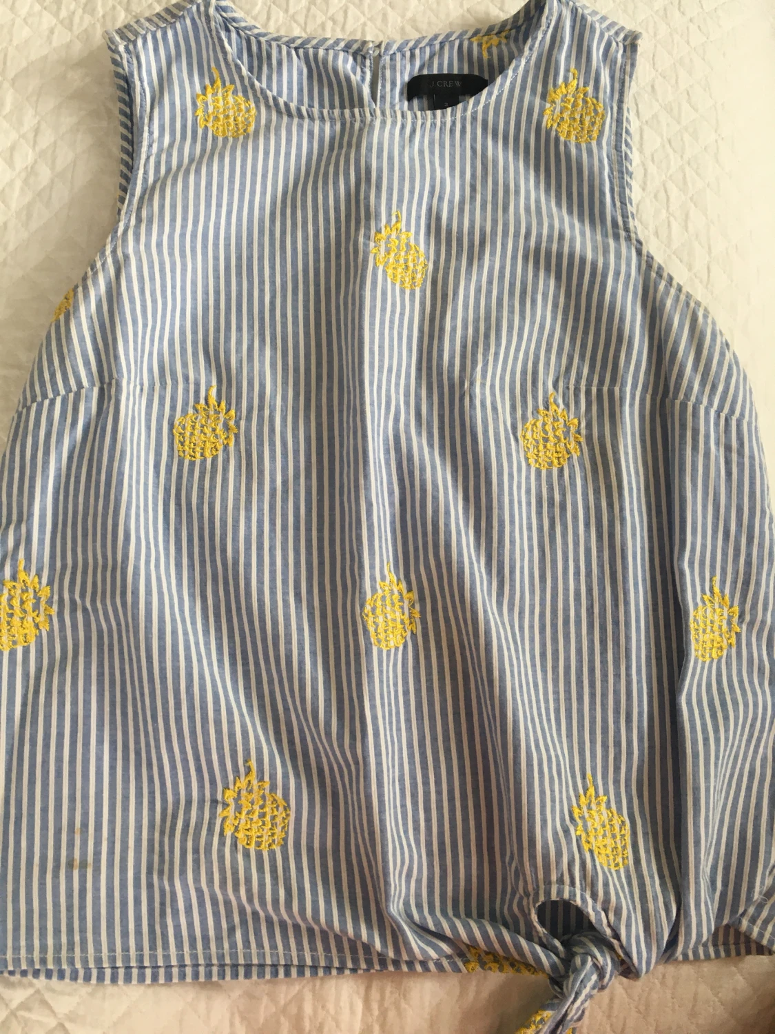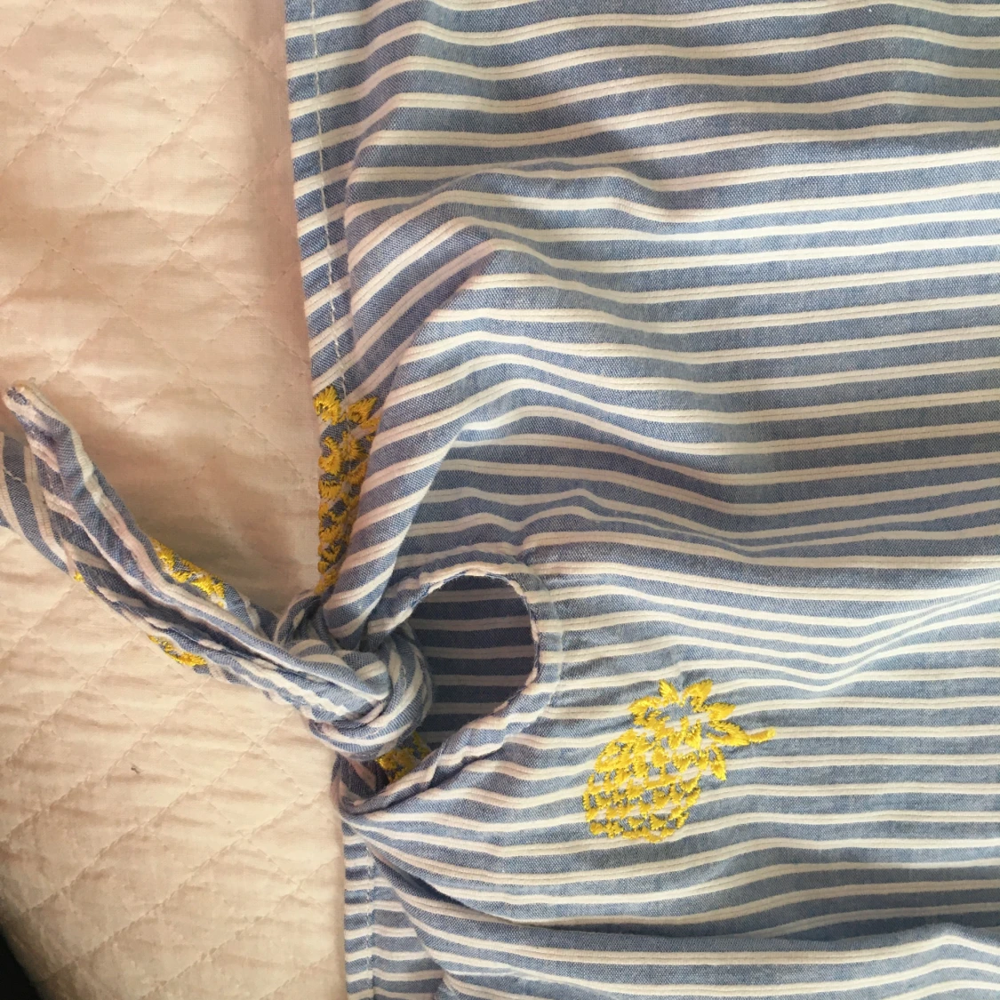 Blå och vitrandig top med knytfunktion på ena sidan. 100% bomull Produkt i bra skick.