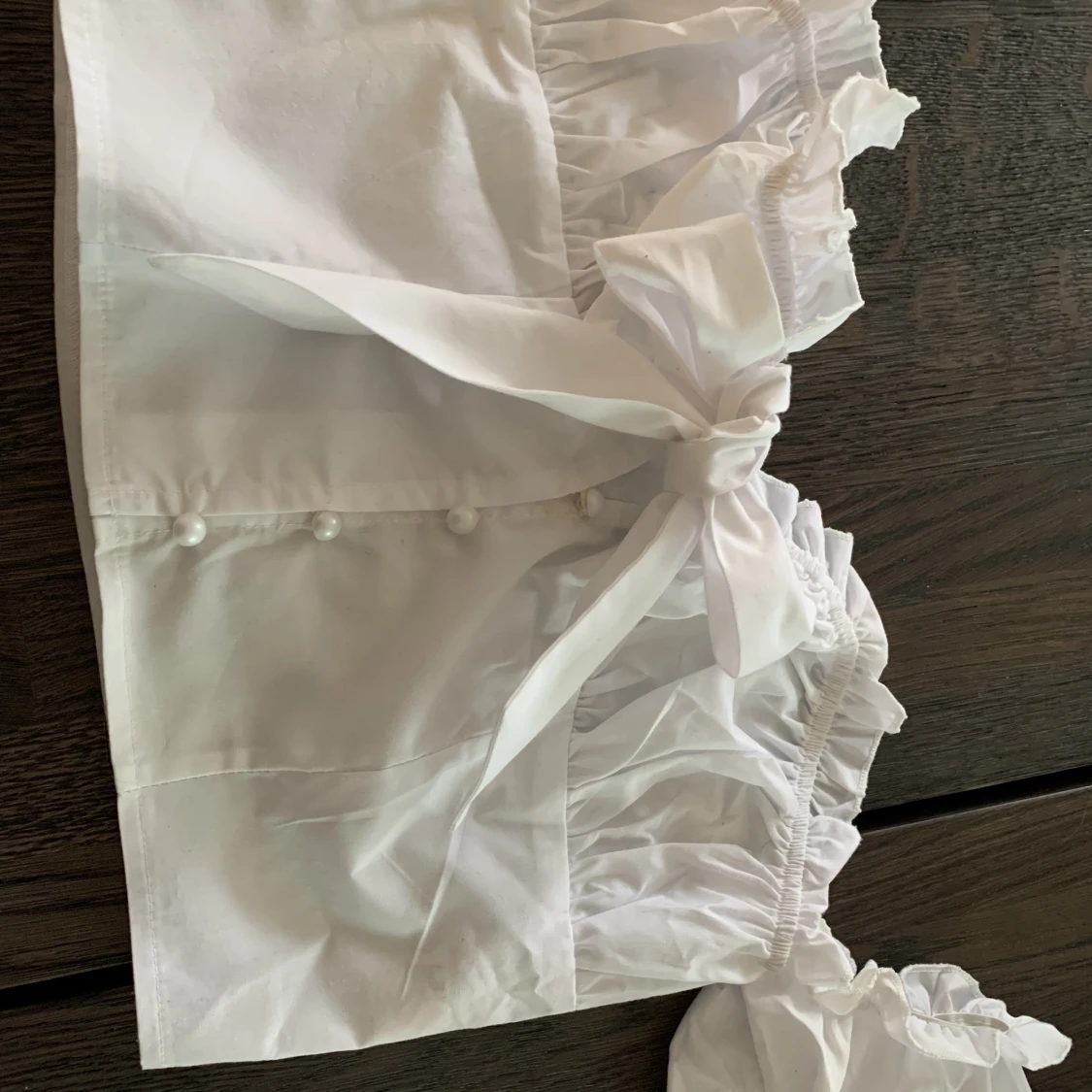 Så fin offshoulder topp med knyt och pärlemorknapoar fr PrettylittleThing. I fint skick.