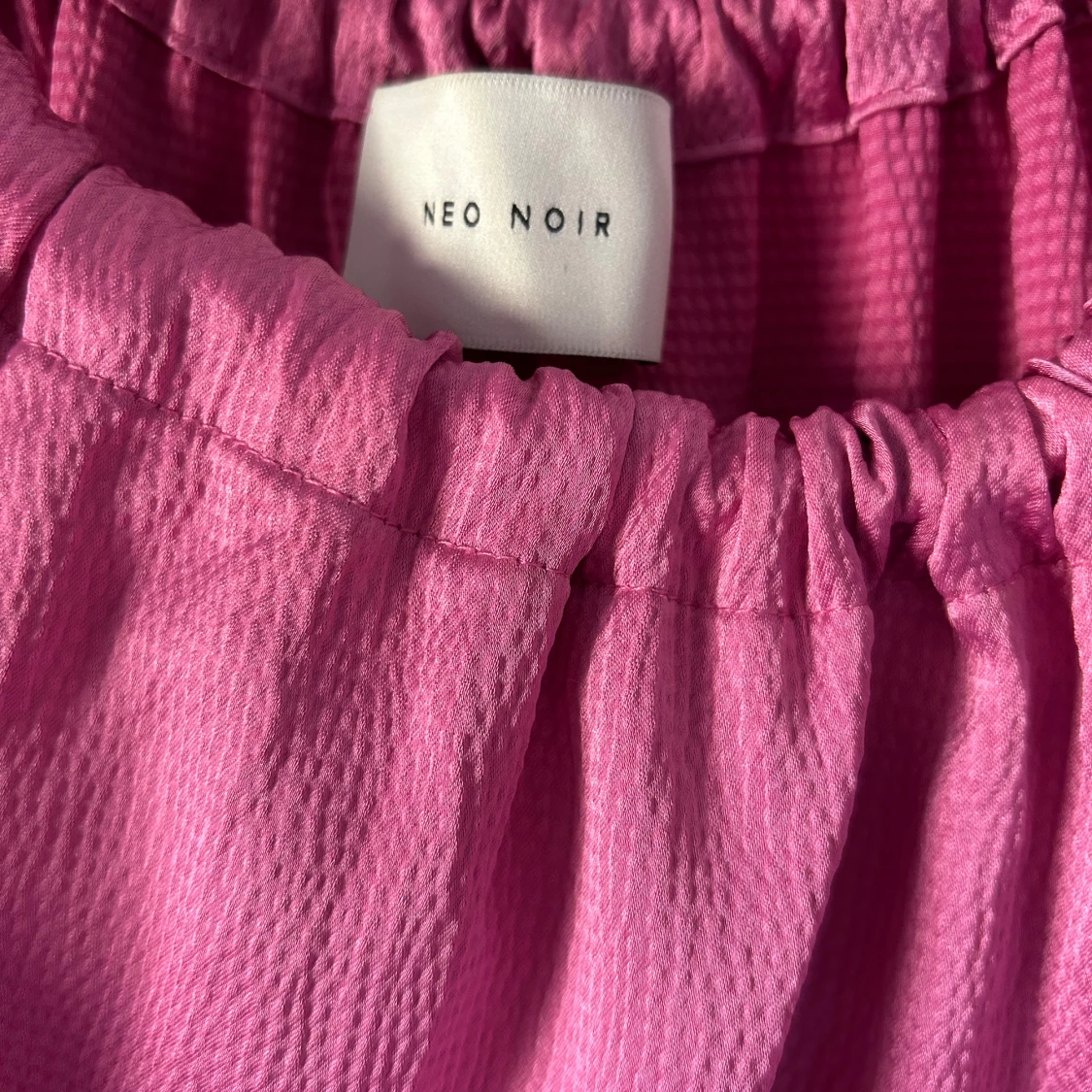 Säljer en söt rosa blus från Neo Noir med knytband på ena axeln. Blusen har en lös passform och är tillverkad i ett strukturerat tyg. Perfekt för varma dagar och somriga tillfällen.💐