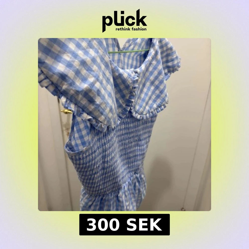 Charmig blå och vit rutig blus med korta ärmar och en söt krage. Blusen har en smockad midja som ger en fin passform och volangdetaljer vid kragen. Perfekt för en somrig look!