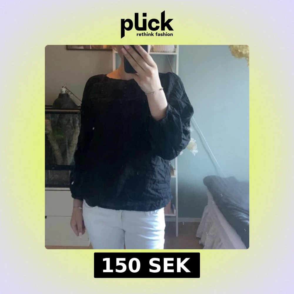 Svart blus från Frk i storlek 36. Blusen har långa ärmar, dekorativa veck och små knappar framtill vid halsen. Tillverkad i ett lätt och luftigt material som känns skönt mot huden. Perfekt för dig som gillar en stilren och enkel look.