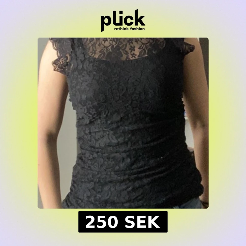 Snygg svart spetsblus med korta ärmar och ett elegant mönster. Blusen har en hög hals och är tillverkad i ett genomskinligt spetsmaterial. Det finns linne under! Kvaliten är super bra, aldrig använt. Storlek är mellan 36/38