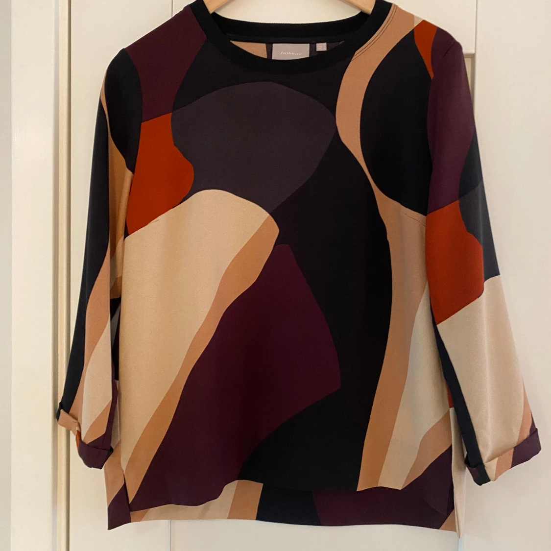 Ny mönstrad blus från Inwear i strl 36. Ny, aldrig använd. Mått Över axeln: ca 40 cm Längd från axeln och ner: ca 61 cm 100% polyester Kommer från ett djur och rökfritt hem.