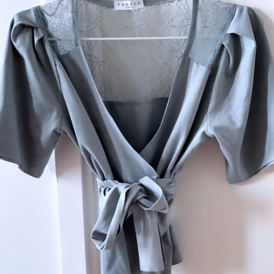 Fin grå mocca blus med spets från sandro Paris grå blå nypris 1700 släpper för 780