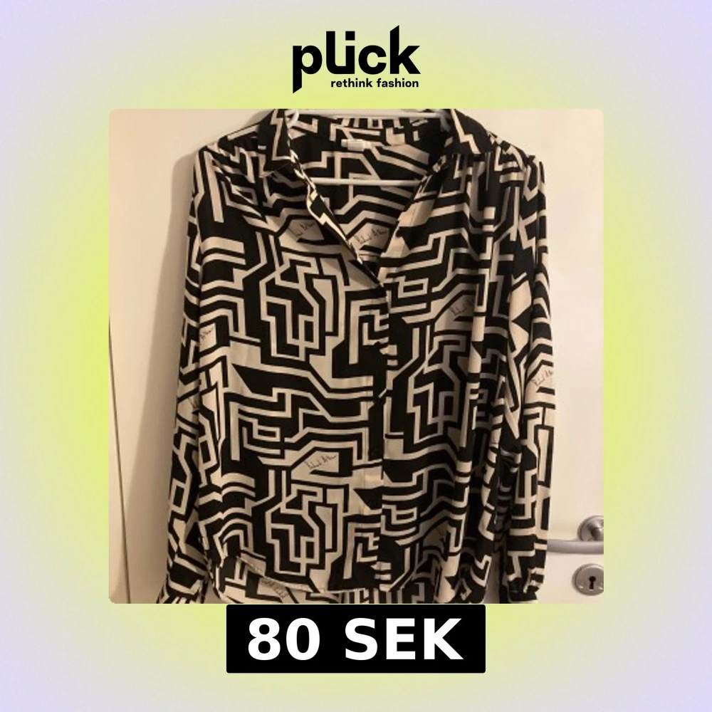 Säljer en svartvit skjorta med grafiskt mönster från Richard Allan x H&M. Skjortan har klassisk krage, knäppning framtill och långa ärmar. Perfekt för dig som gillar unika prints och vill sticka ut.