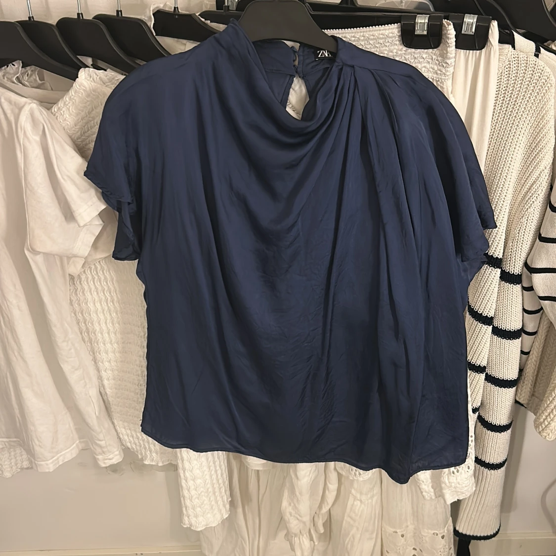 Säljer nu en snygg blå blus från Zara i storlek S💕 Perfekt för en stilren look. Säljer den då den inte kommer till användning längre💕säljer den för 150+frakt då jag köpte den för 300kr💕