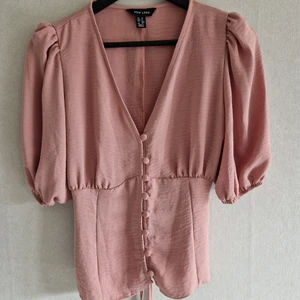 Elegant rosa blus från New Look, strl 40, 3/4 ärmar med resår, knappar fram och snöring i ryggen. Aldrig använd.