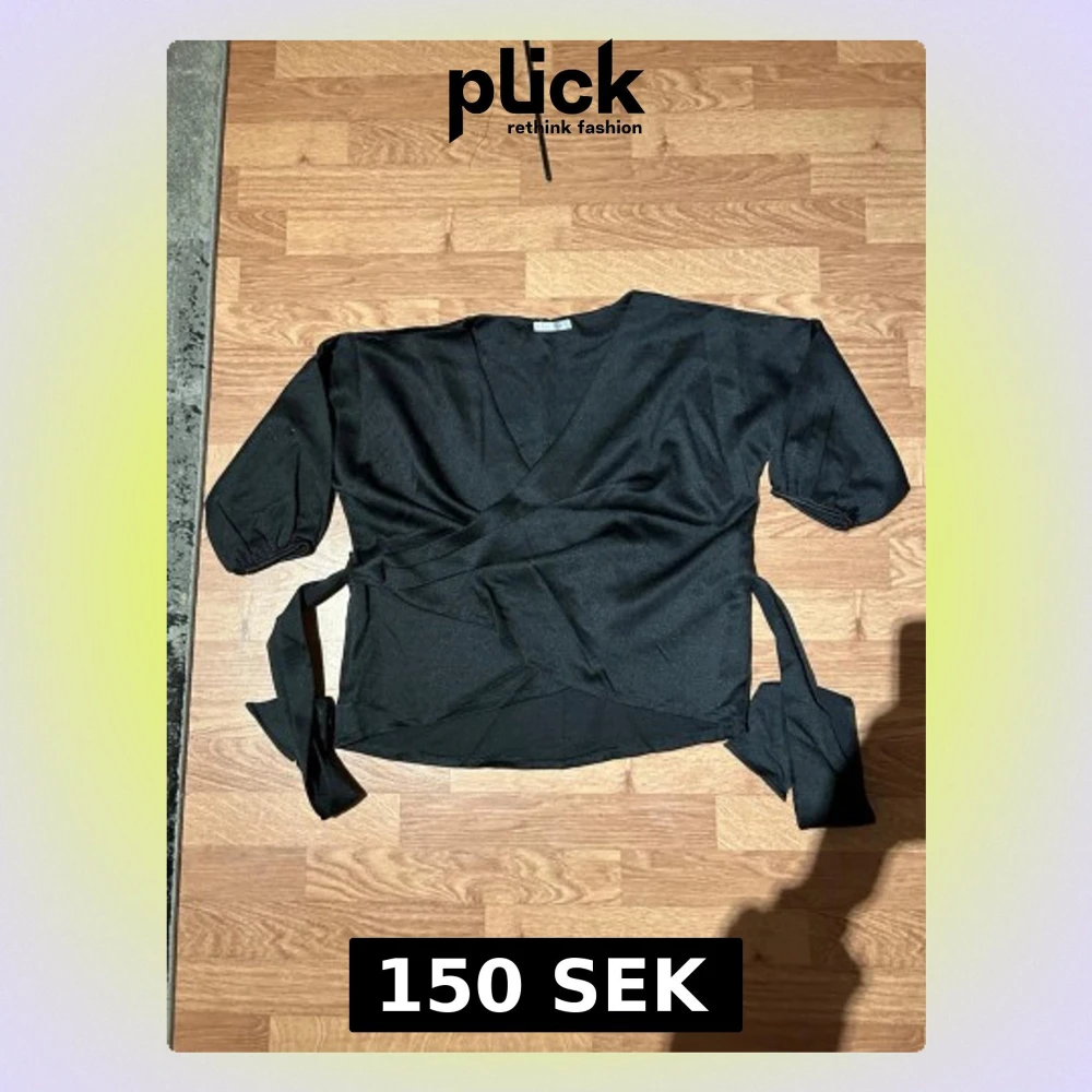Stilren svart topp i omlottmodell med korta ärmar och knytband i sidan som ger en smickrande passform. Tillverkad i mjukt och följsamt tyg, bekväm att bära både till vardags och vid festligare tillfällen. Kan enkelt kombineras med jeans, kjol eller byxor.