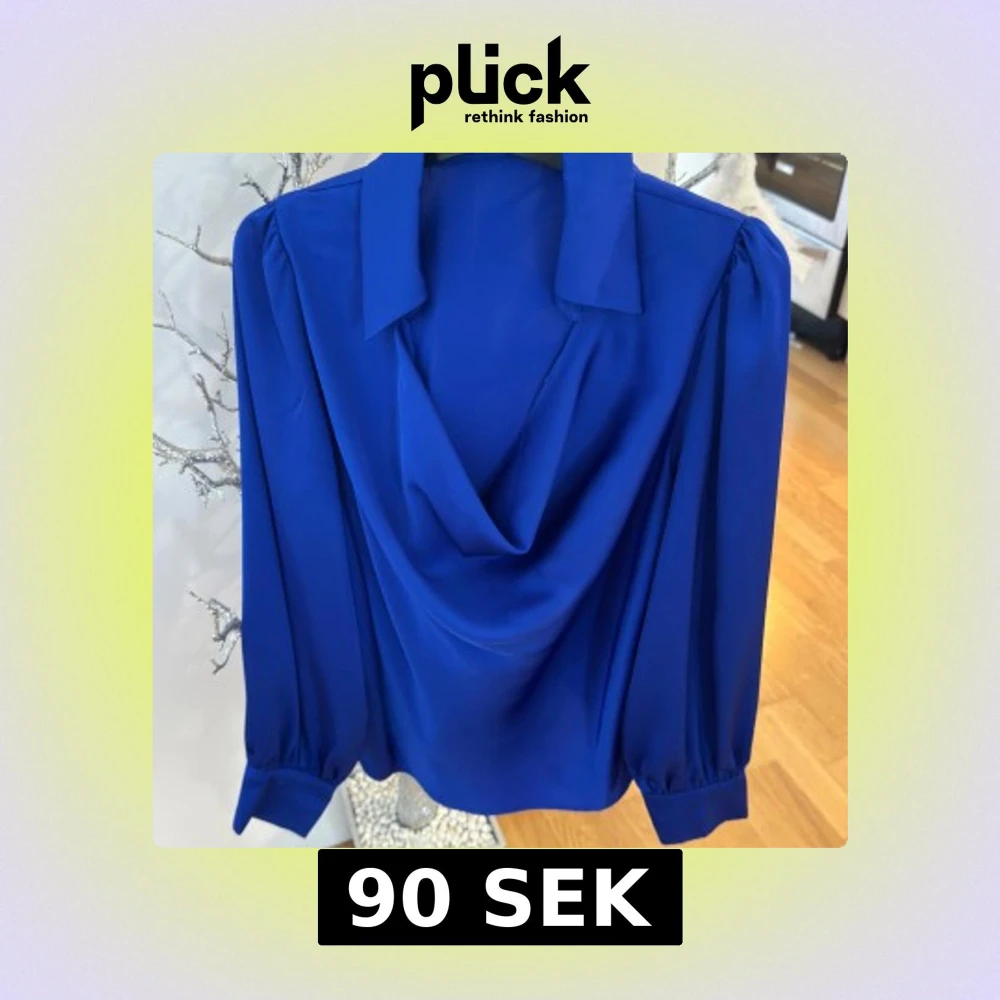 Säljer en blå blus Blusen har lång ärm och är tillverkad i ett glansigt, mjukt material som ger en elegant känsla.