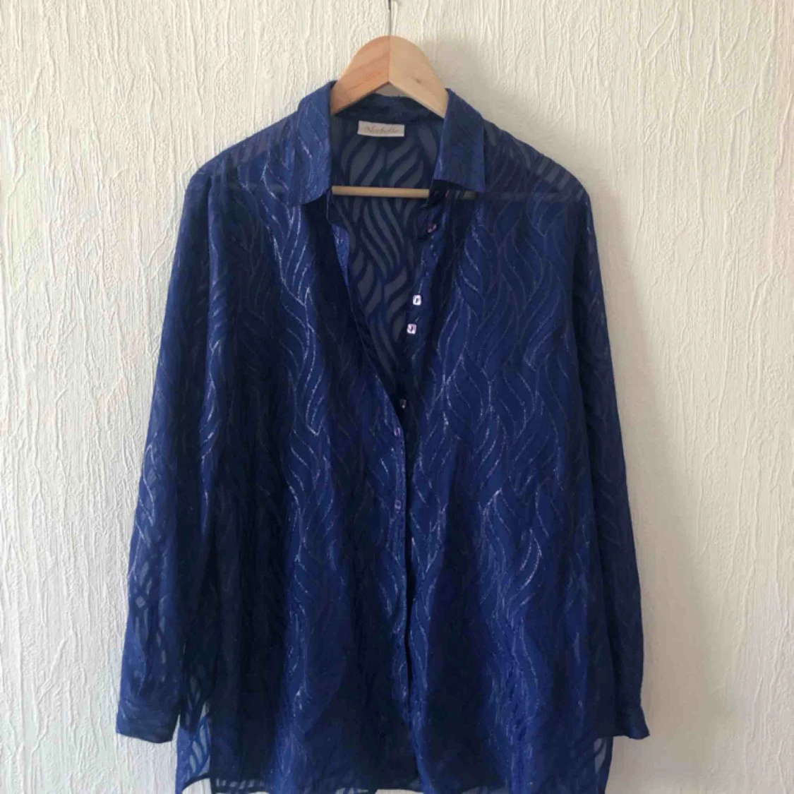 Fin blå transparent skjorta/blus köpt 2hand. Möts i Malmö eller köparen står för frakt.