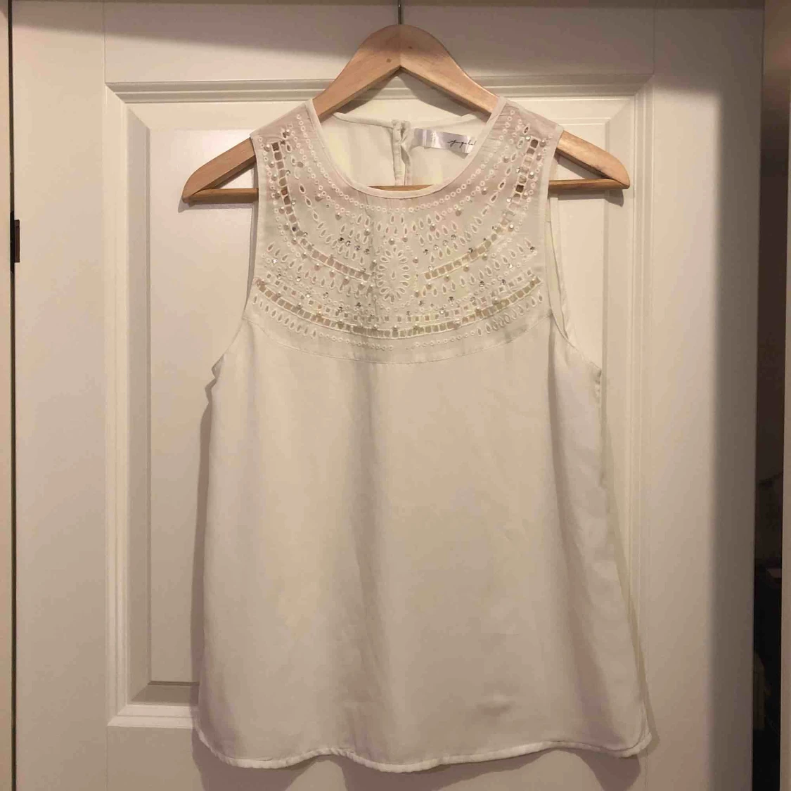 Vitt bluslinne med pärl och strass detaljer. Storlek S från angelology. Bra begagnat skick.