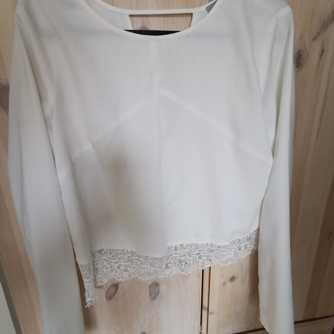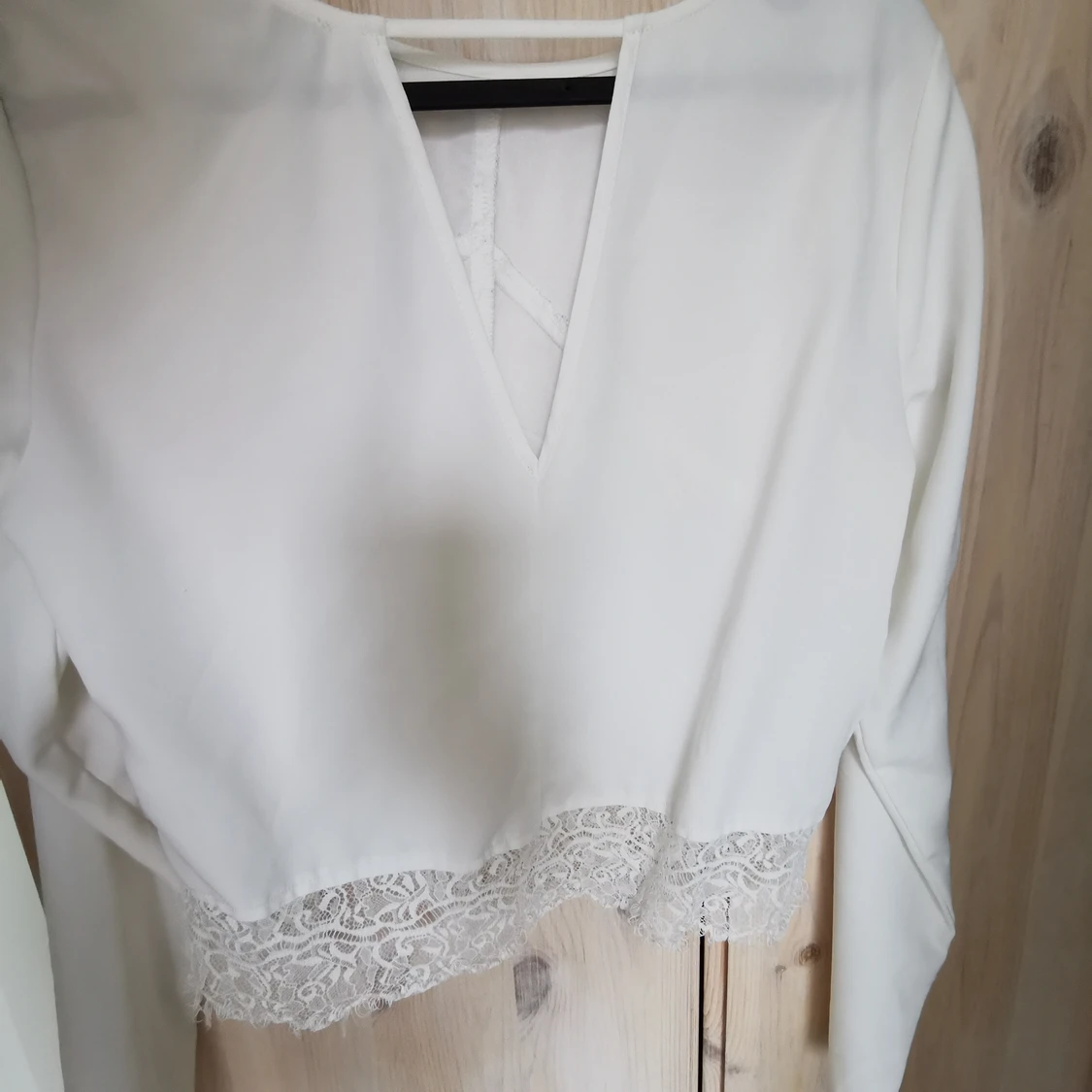 Vit blus från asos med spets i nederkanten. Strl 36. Fint använt skick Köparen står för eventuell frakt, skickar med billigaste alternativet eller annat enligt önskemål ☺️