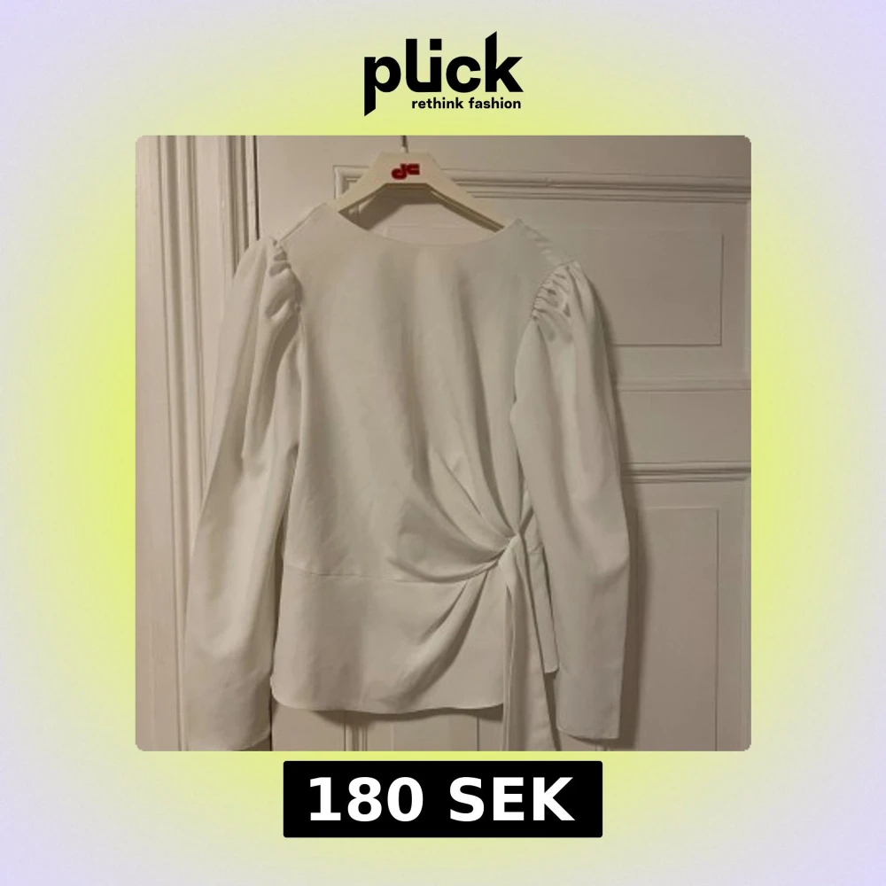 Snygg vit blus med långa ärmar och puff vid axlarna. Blusen har en knutdetalj vid midjan som ger en mer ”snatched ” look 👀