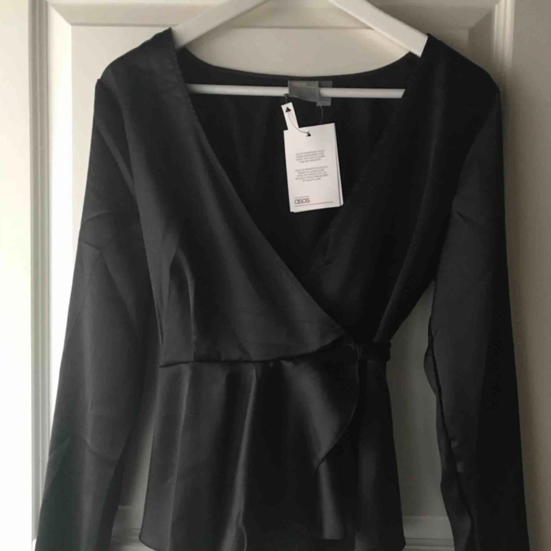 Helt ny omlott top från asos. Lapparna finns kvar. Glansig i tyget. Storlek 38. Var för liten över bysten tyvärr .jag har D kupa men väldigt fin