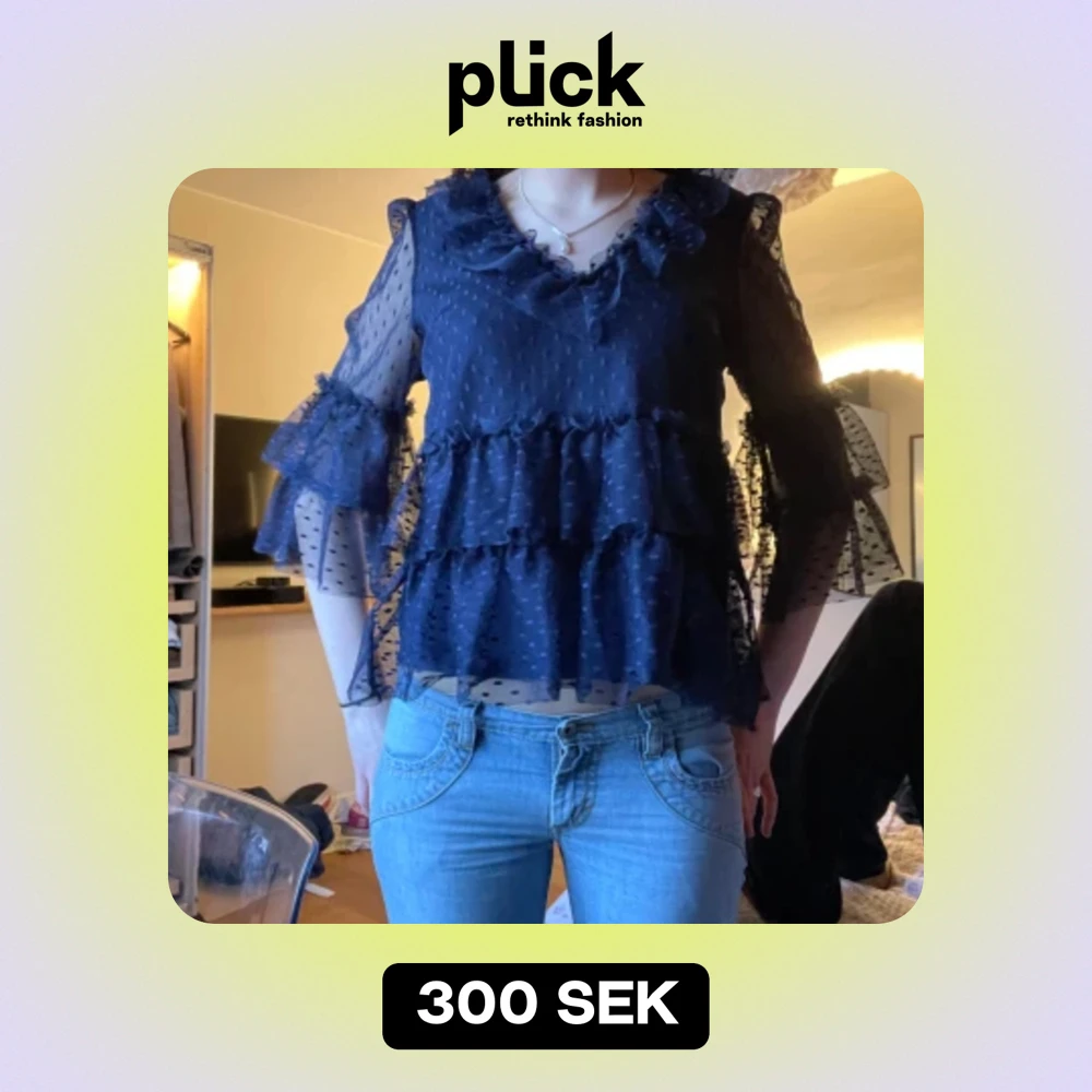 Mörblå blus köpt i en liten butik i Spanien. Använd 1 gång ❤️❤️