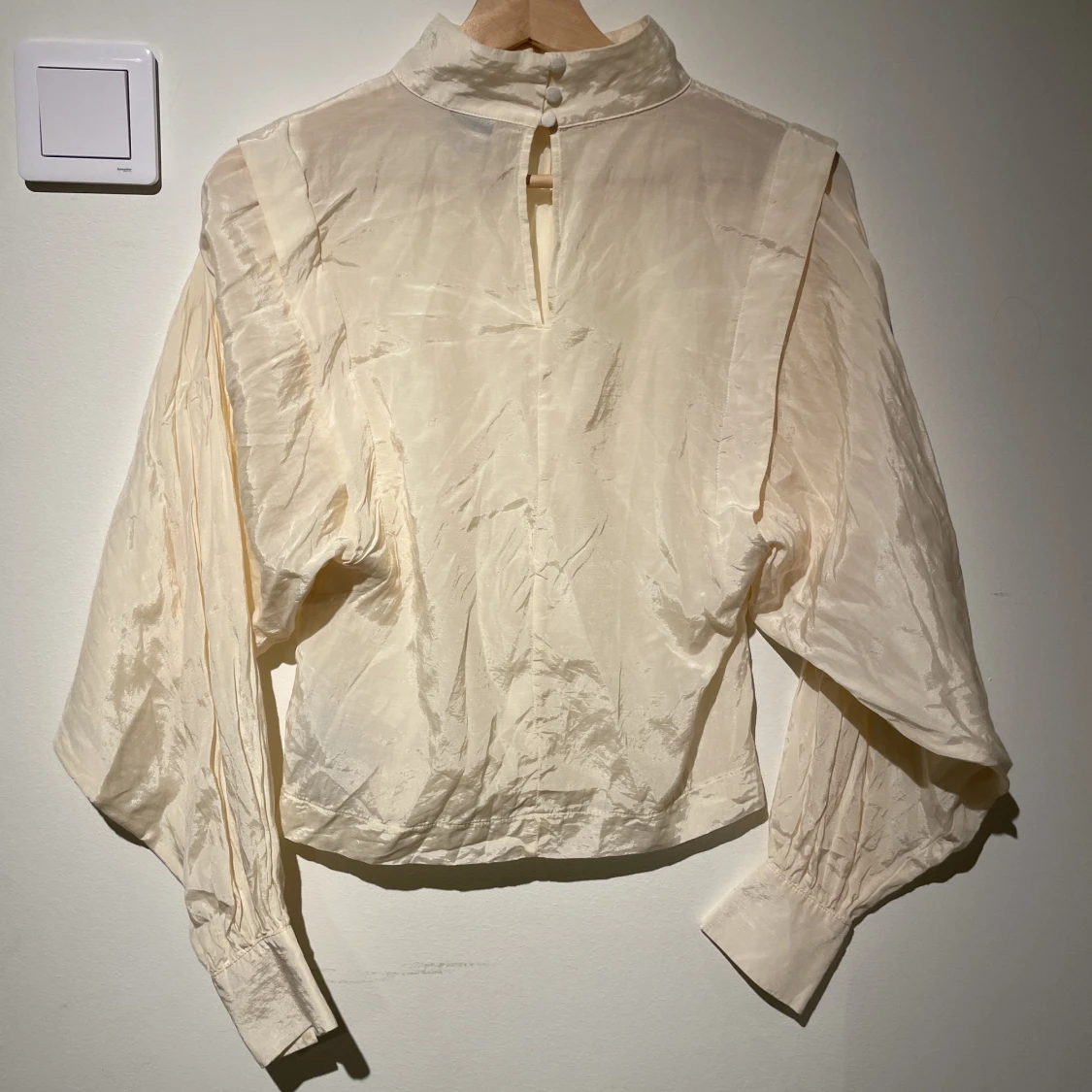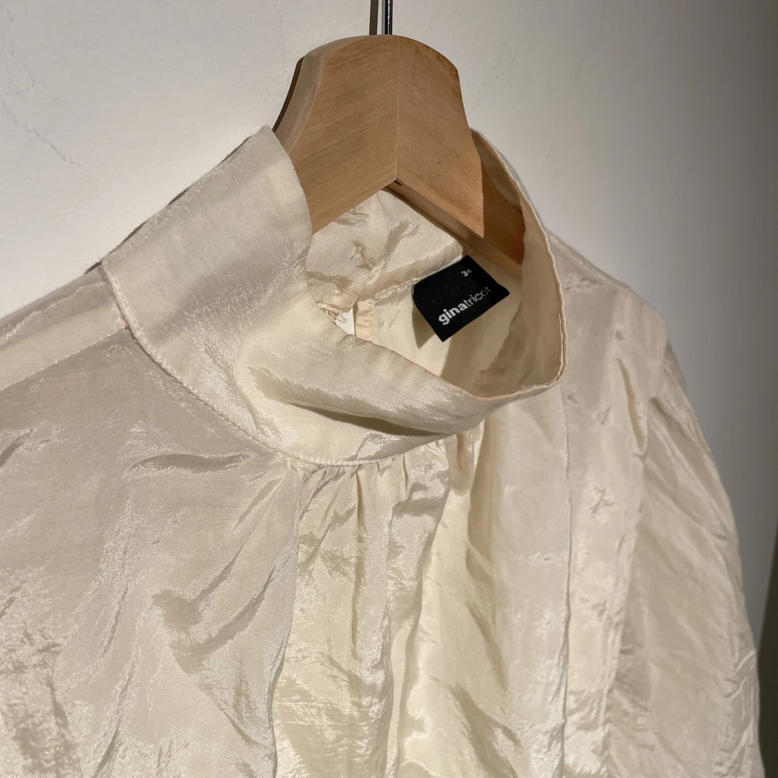 Fantastiskt fin créme-färgad blus från Gina strl 34. Fint skick och mjukt, lättare transparent material.