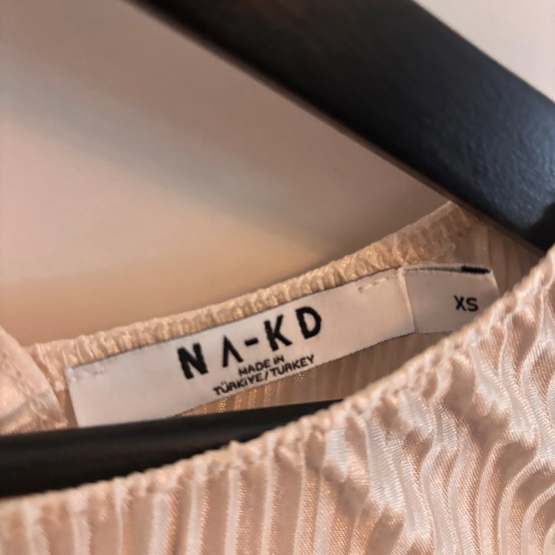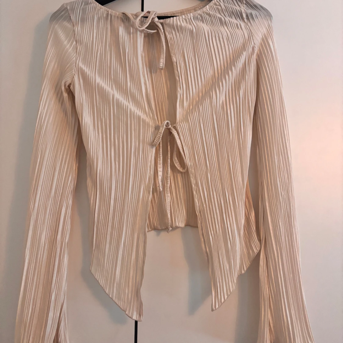Säljer en elegant beige blus från NA-KD med långa ärmar och knytning baktill. Blusen har ett plisserat mönster och är tillverkad i ett glansigt material som ger en lyxig känsla. Perfekt för att höja din stil till nästa nivå!