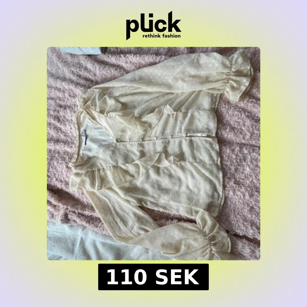 Säljer denna söta blus med volanger fram och bak. Den är krämvit/beige och sitter skönt och luftigt, den har även ett extra lager inuti så den är inte genomskinlig 💕från vila storlek 38