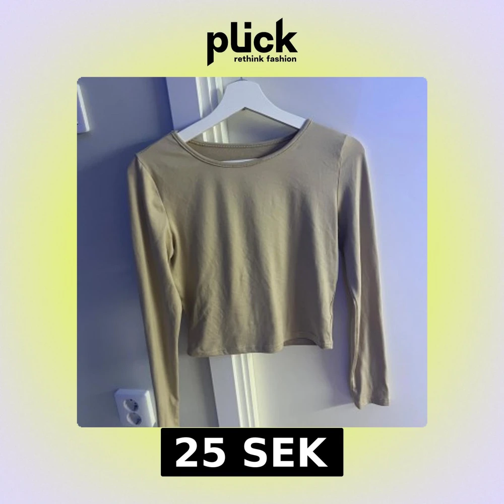 En enkel och stilren beige långärmad topp med rund hals. Toppen är croppad och gjord i mjuk bomull, perfekt att matcha med jeans eller kjol för en clean look.