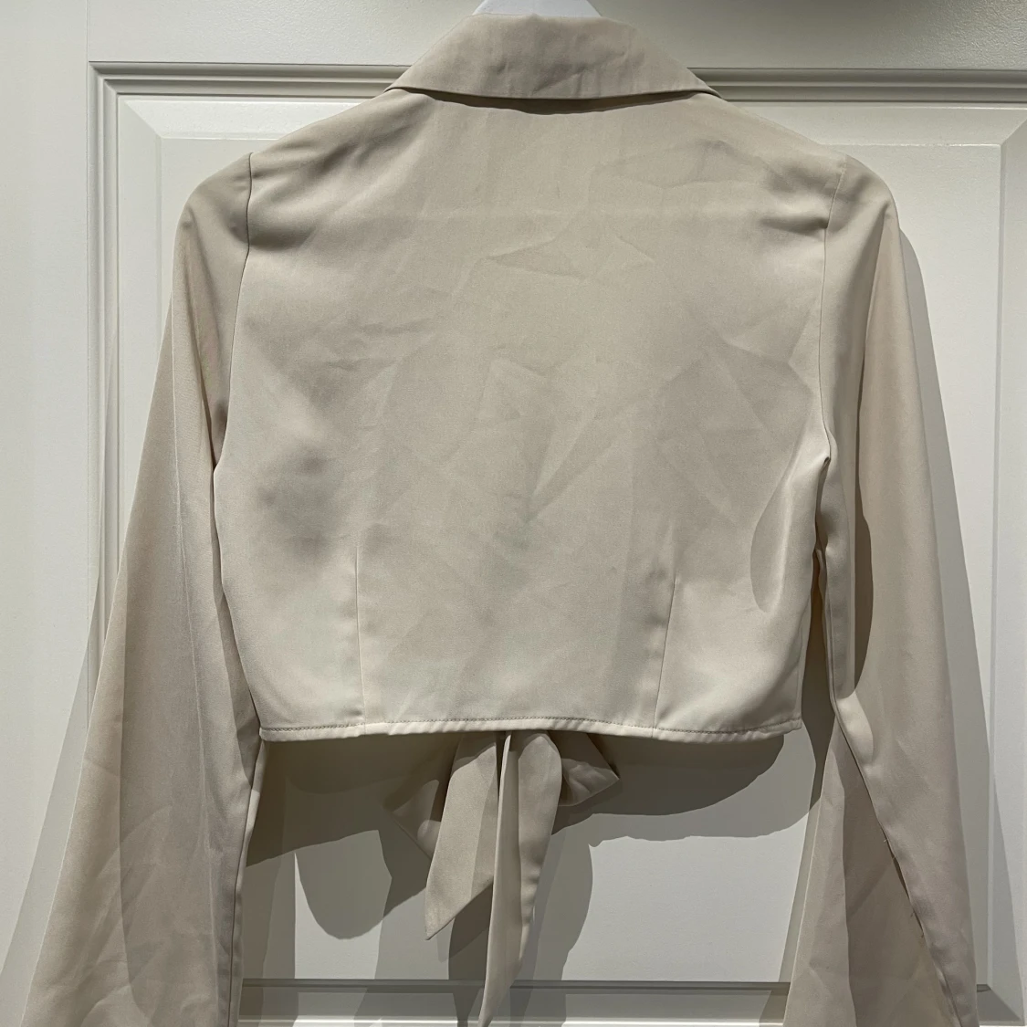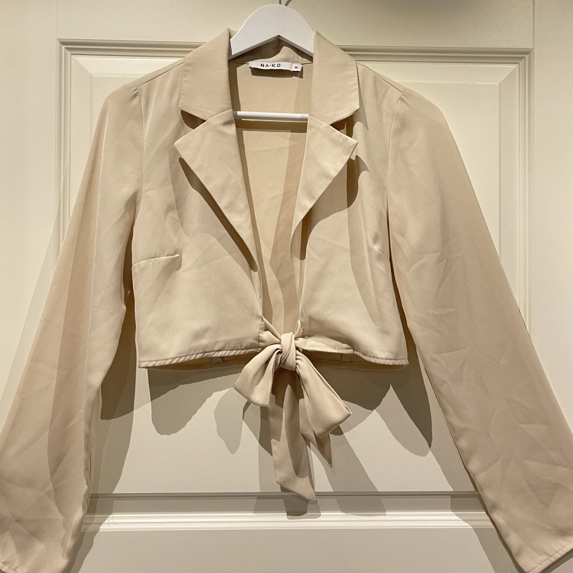Säljer denna beiga toppen/koftan från NA-KD. Knytningen kan göras på flera olika sätt. Storlek 36. Säljes för 120kr. Fraktas på köparens bekostad