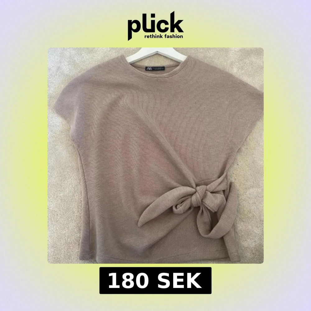 Superfin beige stickad topp från Zara med korta ärmar och rund hals. Toppen har en snygg knytdetalj i sidan som ger en cool och trendig look. Perfekt att styla med jeans eller kjol för en chill vibe.