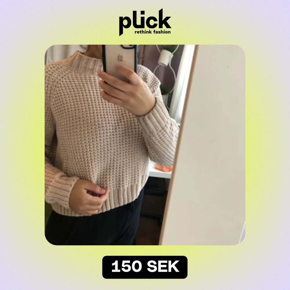 Beige stickad tröja med ett mjukt material. Den är i ett gott skick och passar fint tillen kjol🍂☺️