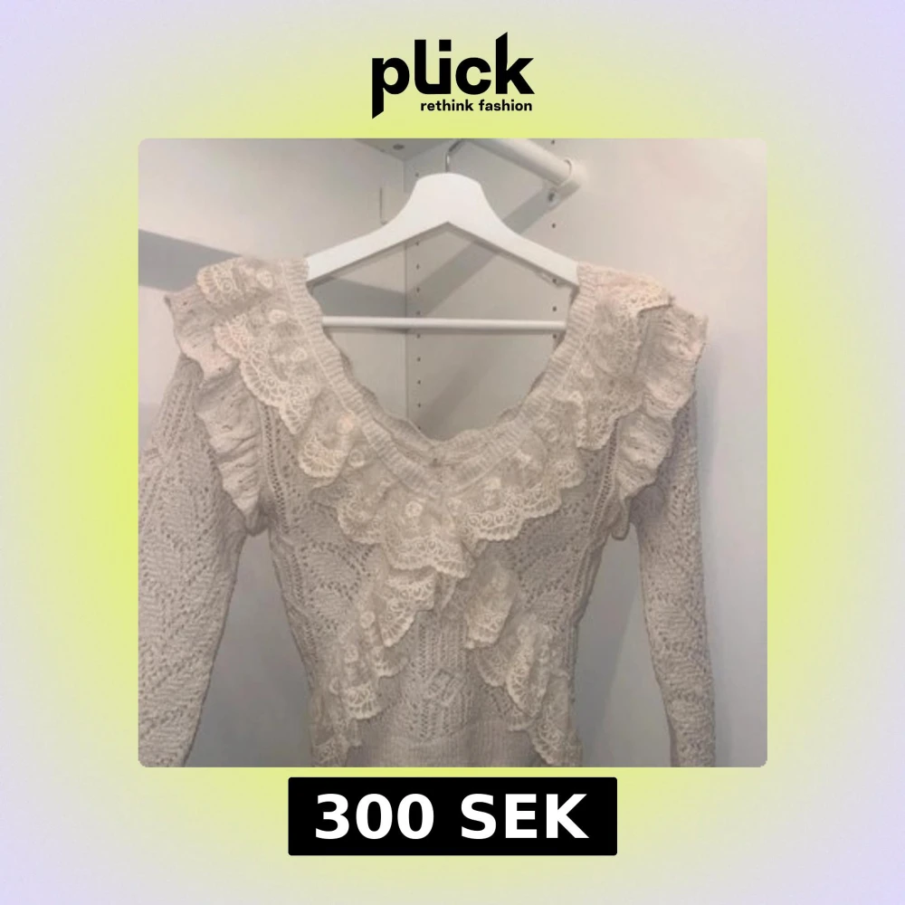 Säljer en elegant beige stickad tröja från Zara med vackra spetsdetaljer och volanger. Tröjan har långa ärmar men fortfarande perfekt för sommarväder 💝💝Använt två gånger