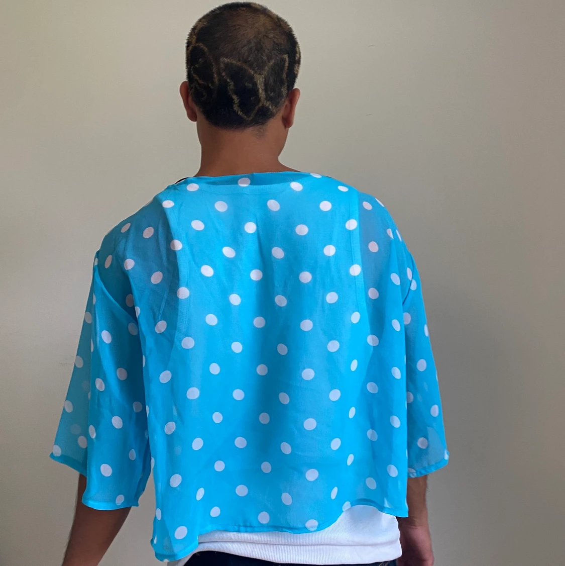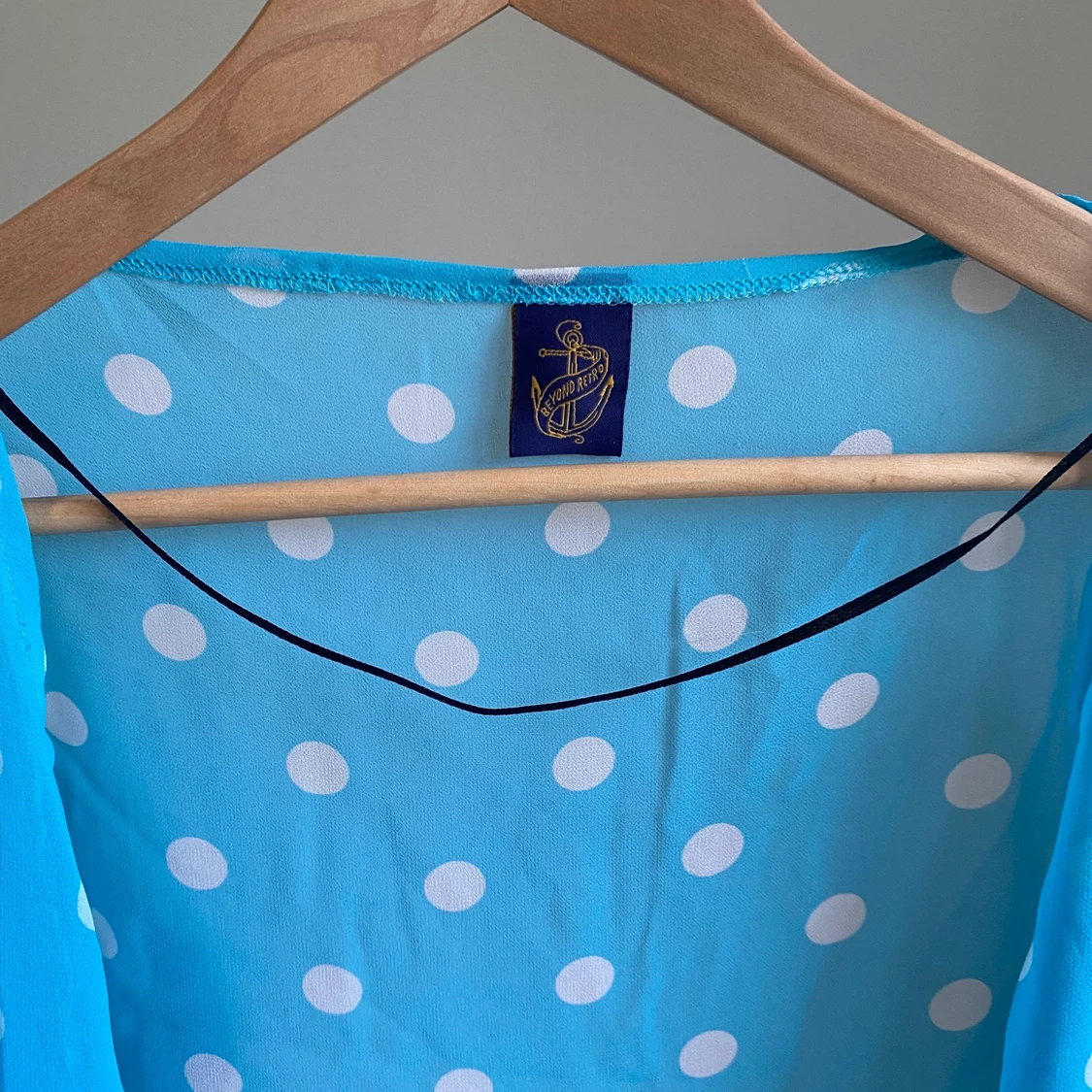 En fin-liten-söt-prickig-sommar-blus från Beyond Retro som är sparsamt använd, cirka 2 gånger no cap. Den är slapp och kramar inte om i axlarna eller ärmarna, men längden på blusen skulle jag påstå vara small. Skön för varma sommardagar och kvällar men även för att chilla i hemma. DM vid frågor😋😌💕✌🏽