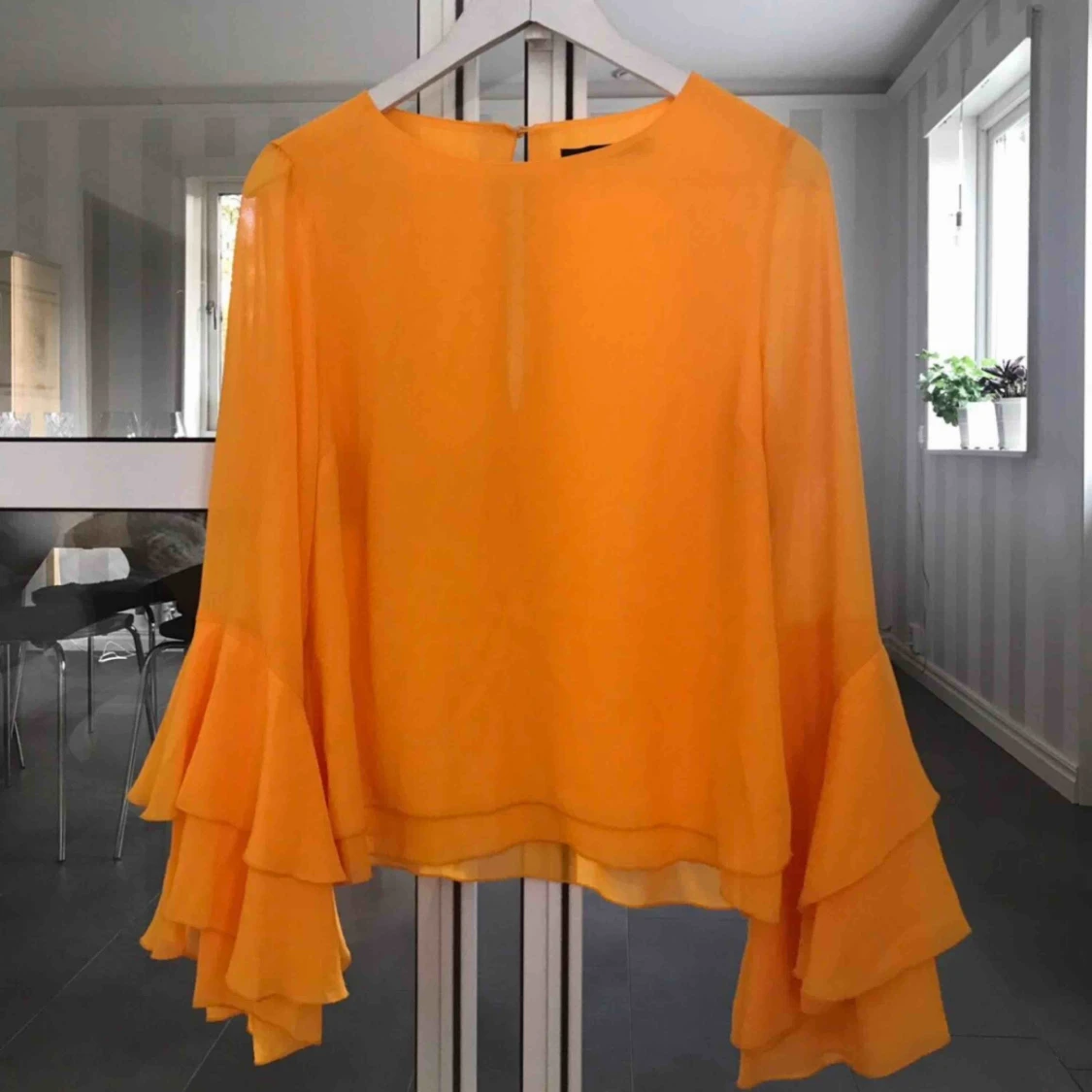 Gul blus med volangärmar från BikBok. Köpt för 400 kr.