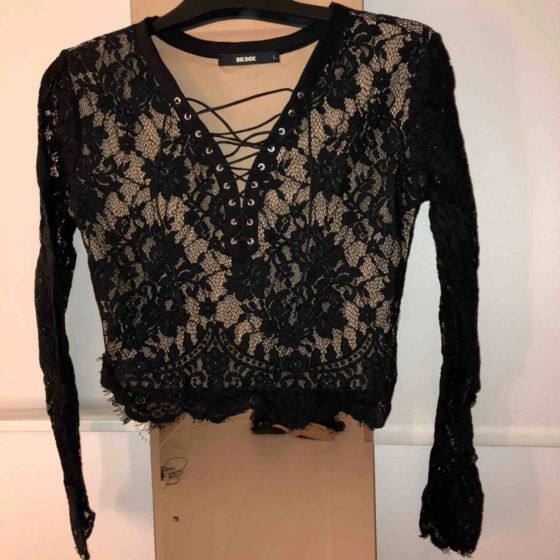 Croppad Spetsblus med snörning. Storlek L men är som S