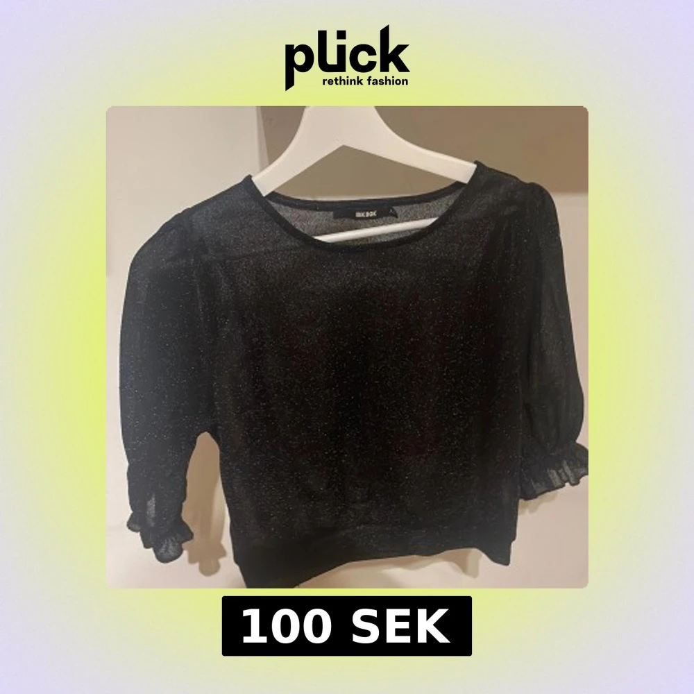 Snygg svart glittrig topp från Bik Bok med trekvartsärmar och rund hals. Perfekt för en kväll ute eller festliga tillfällen. Toppen har en elegant glans och är lätt att matcha med olika outfits.