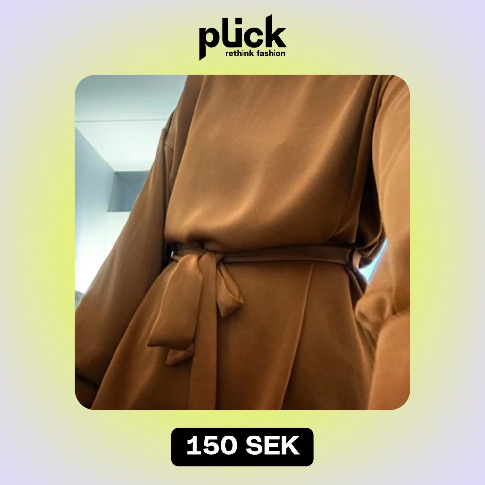 Säljer en snygg brun-koppar blus från Bik Bok i storlek L. Den har långa ärmar och ett knytband i midjan för en fin passform.