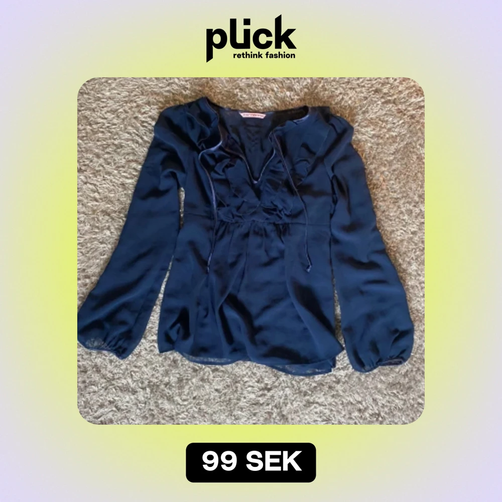 Blå genomskinlig blus köpt i Rom. Använd, med vissa små skador men i allmänt bra skick. Klicka hälst inte på köp nu utan att skriva till mig först!
