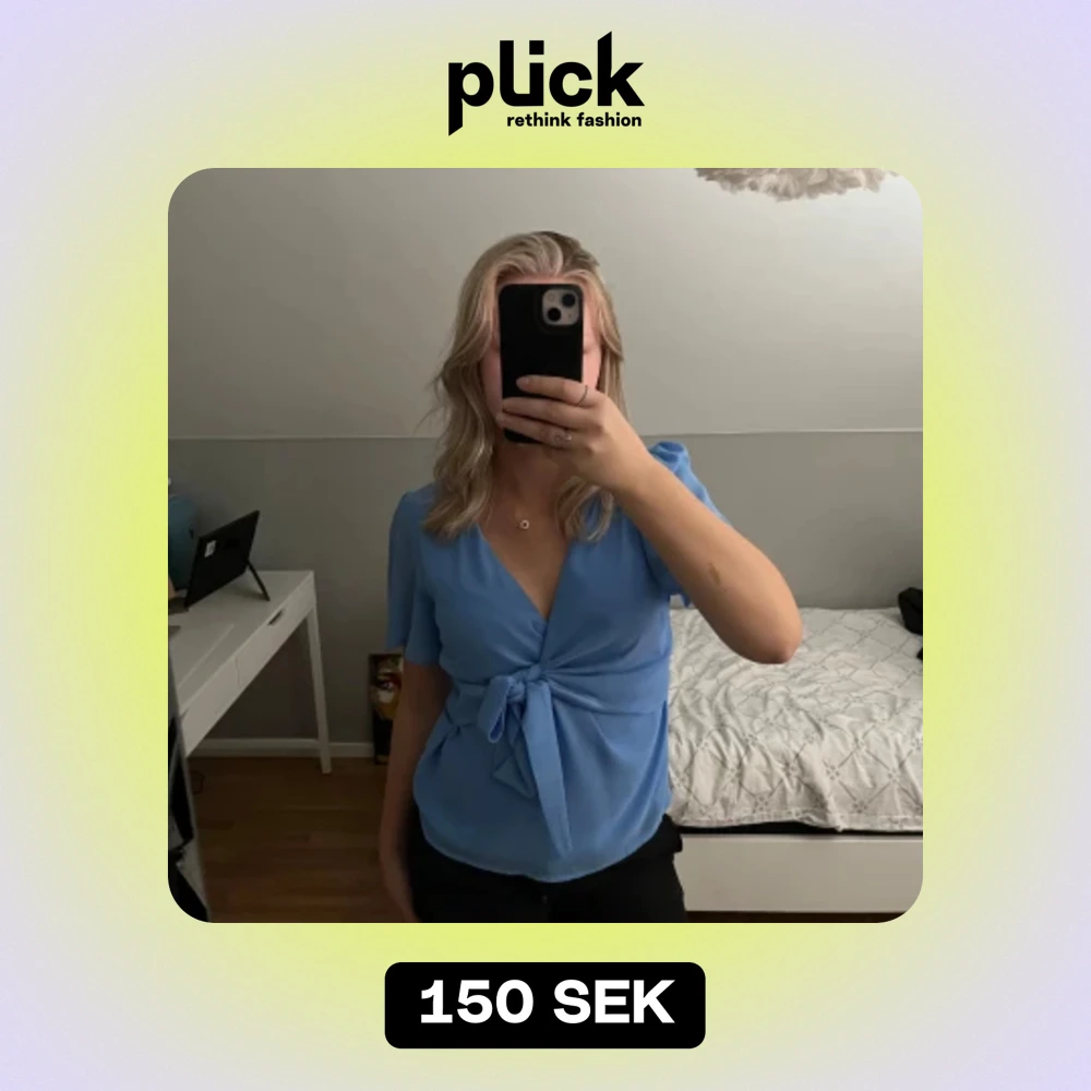 Säljer denna jättefina blå blus från Object som är köpt från Vero Moda!💙 Använd en gång och är i mycket bra skick! Blusen har en knytning du knyter själv.