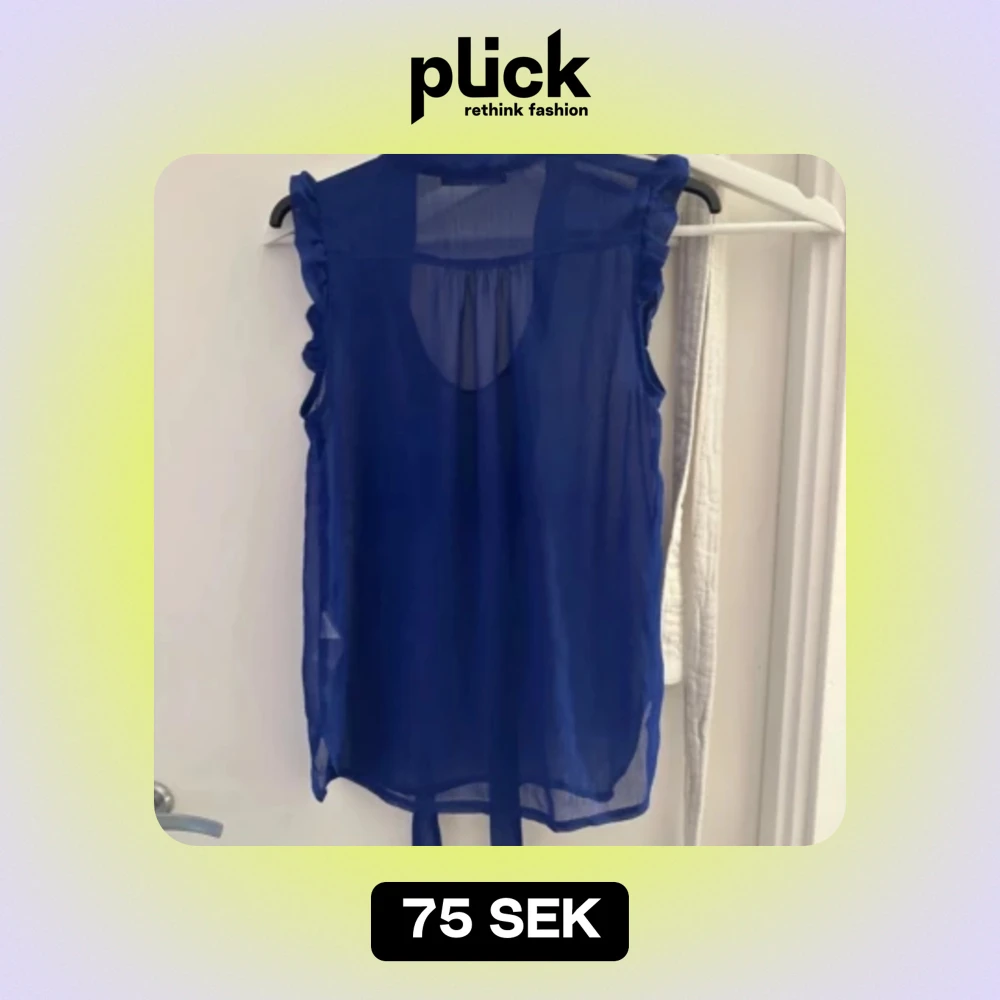 En blå blus i storlek 36. Köpt secondhand och aldrig använd för den är för liten.