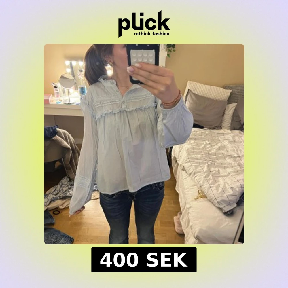 Super fin blå blus från Zara med knappar längst upp och lite fina detaljer💗💗