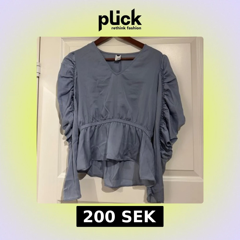 Blå blus från ”visual Clothing project”. Skulle säga att den är lite ljusare i färgen än vad som framgår på bilderna. Inte mycket använd , fint skick! Storlek S