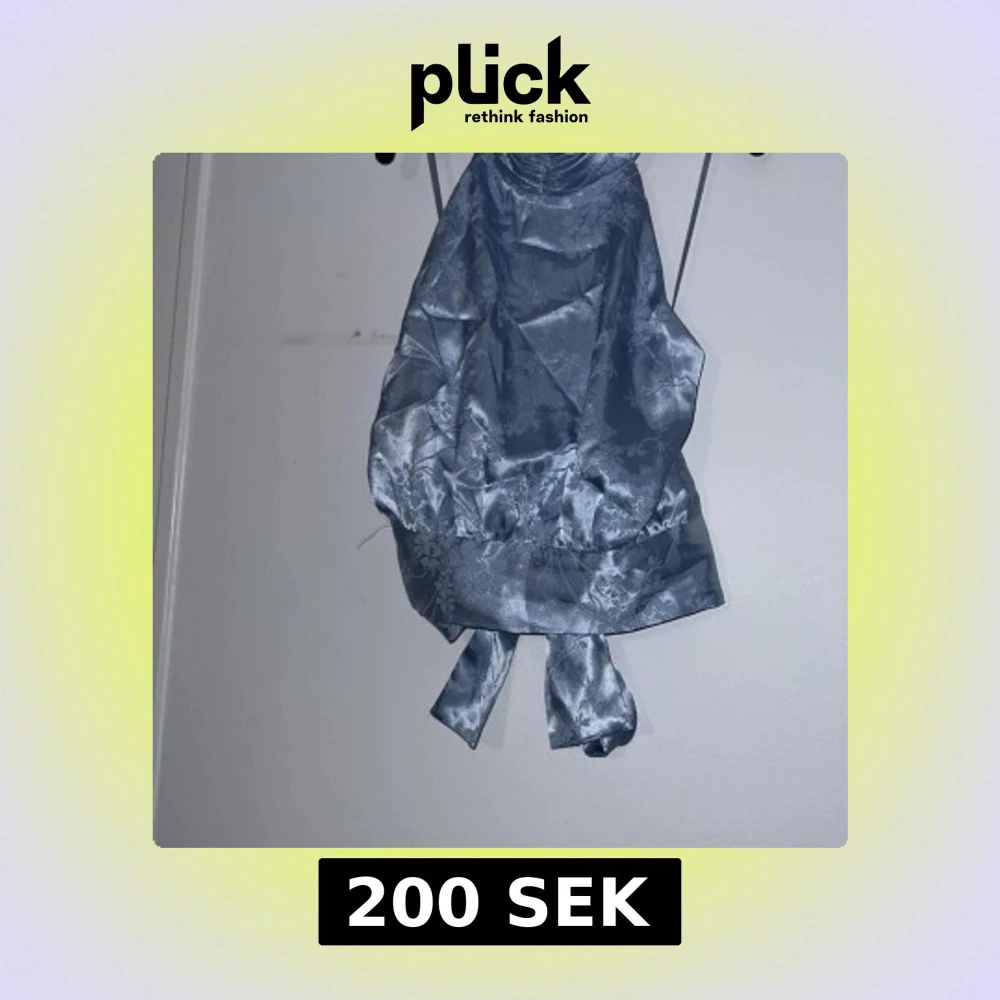Snygg blå topp i siden från Bik Bok med knytning i ryggen. Den har en vacker glans och ett subtilt blommönster. Perfekt för en elegant look.