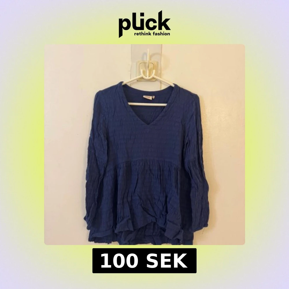 Säljer en blå blus med v-ringning och långa ärmar. Blusen har en luftig passform, volangdetaljer nedtill och ett diskret strukturerat tyg. Perfekt för dig som gillar en avslappnad men ändå stilsäker look. Storlek S men passar nog bättre på m eller l!!💕🥰
