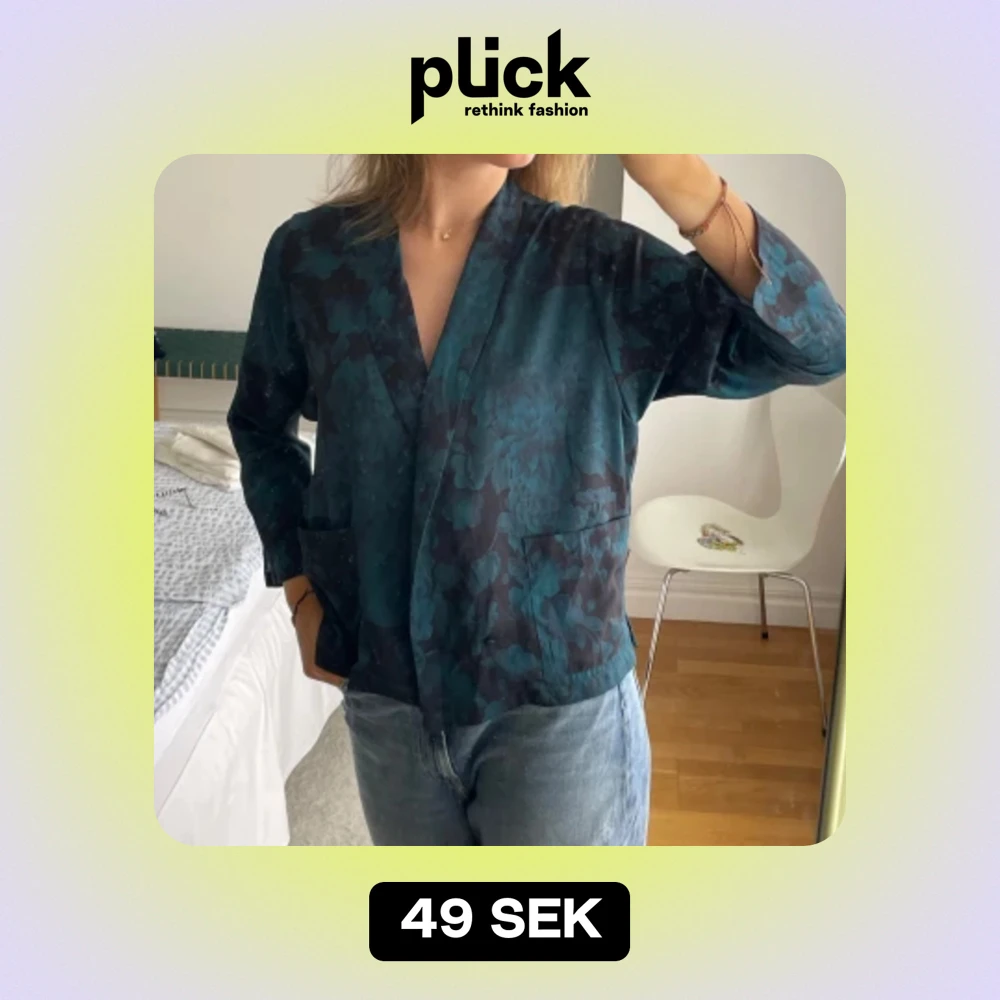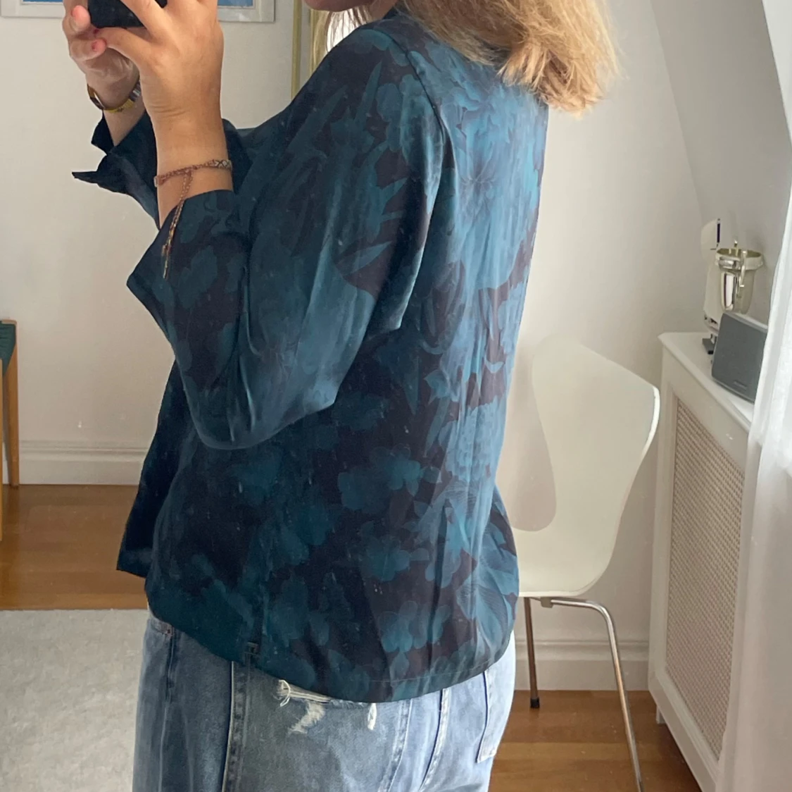 Säljer en snygg mönstrad blus i blå och svart från Zara. Storlek M.
