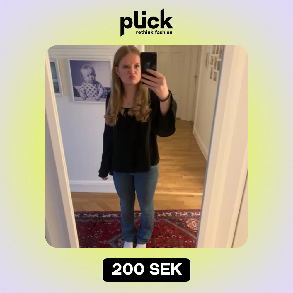 Väldigt söt svart blus i storlek 32 säljer pågrund av att den inte konomer till använding, pris kan diskuteras.