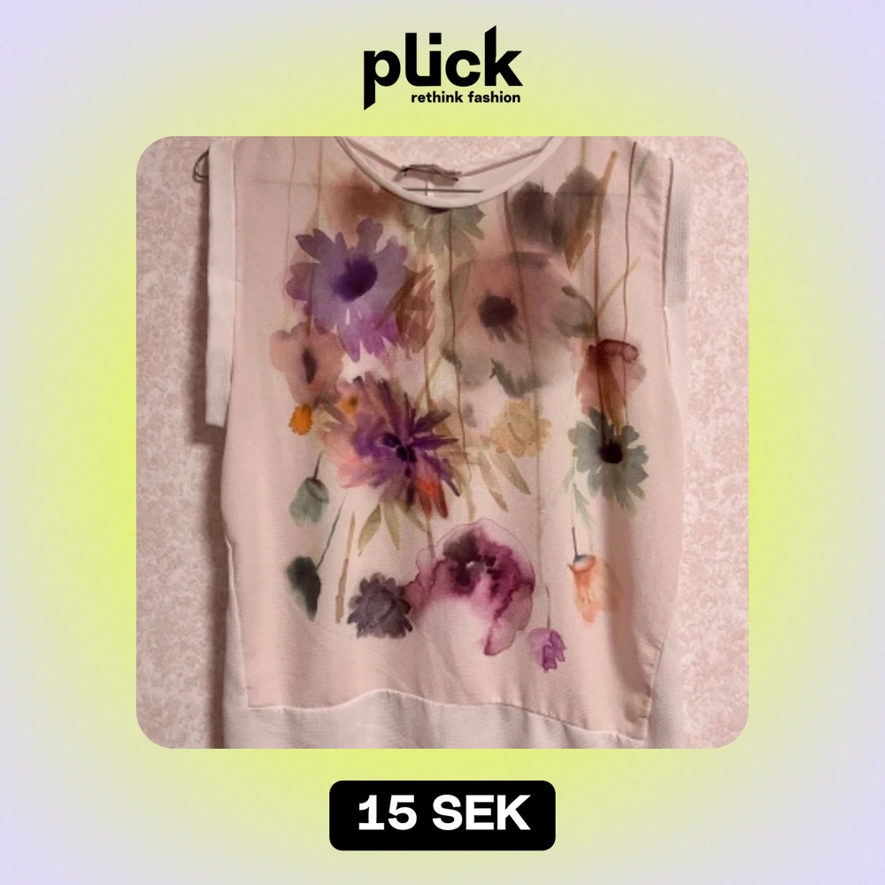 Säljer en blus med ett vackert blommönster i olika färger som lila, grön och brun. Toppen är i ett lätt och luftigt material, perfekt för varma sommardagar. Den har en lös passform och är riktigt bekväm att ha på sig.